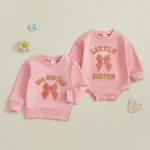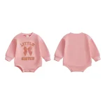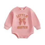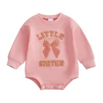Baby Girl Fall Romper Loose Fit Letter Bow Embroidered Crew Neck Long Sleeve Newborn Jumpsuit For cooler autumn days, go for slightly heavier fabrics to keep baby cozy.